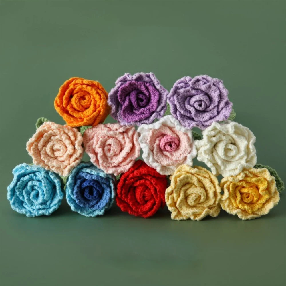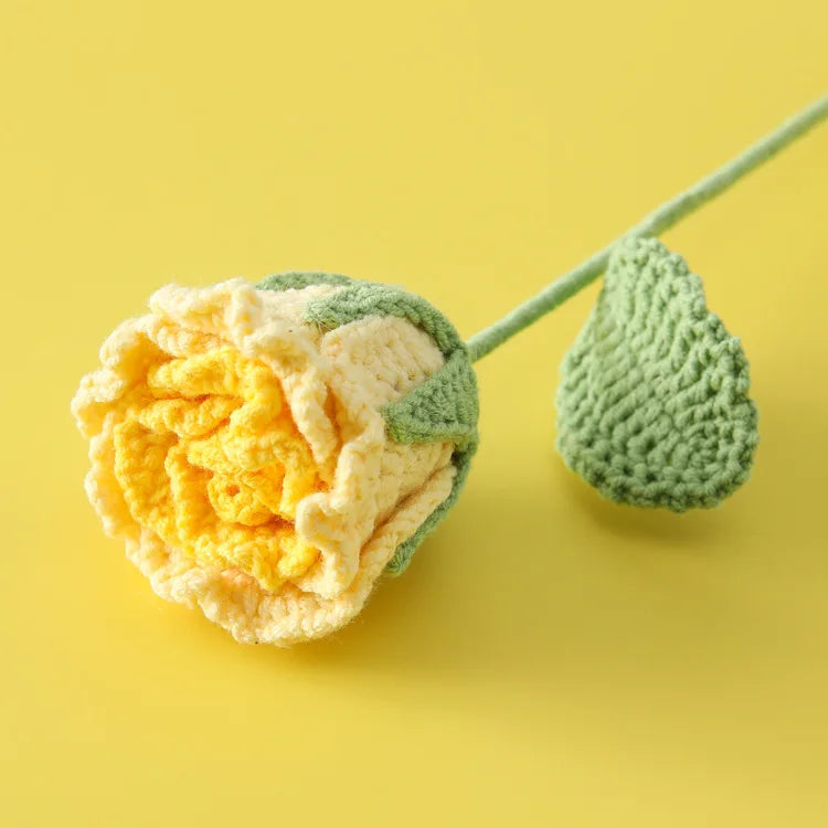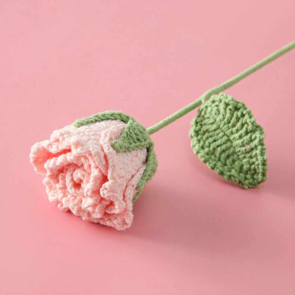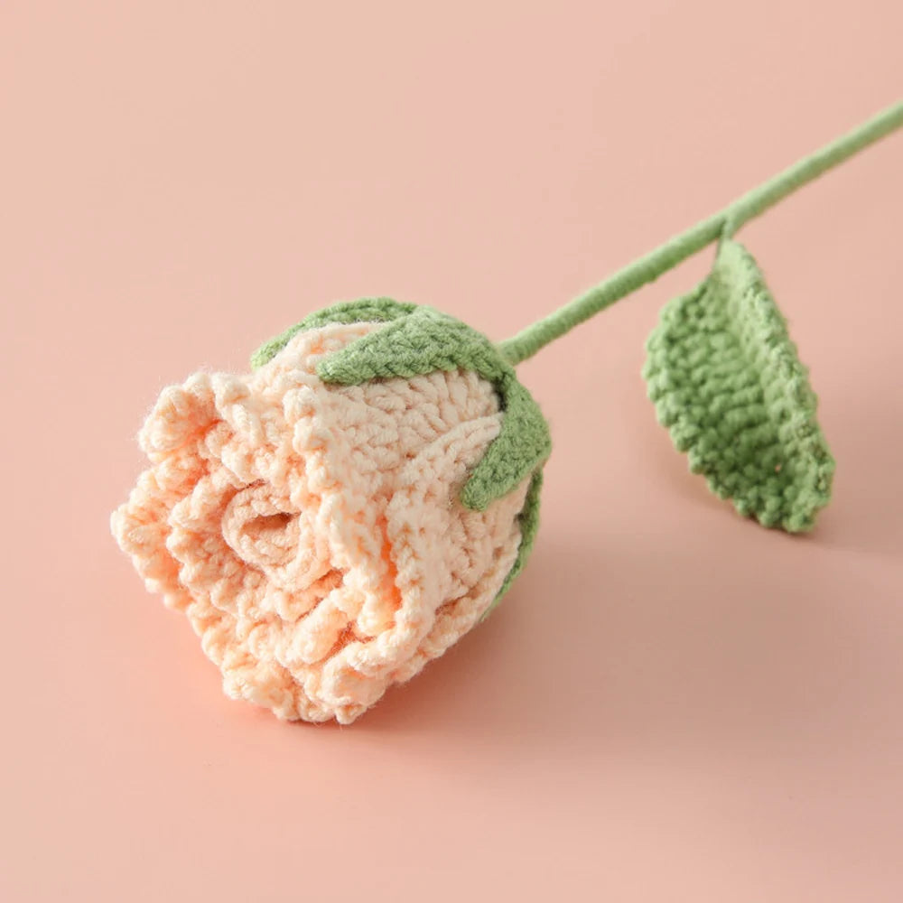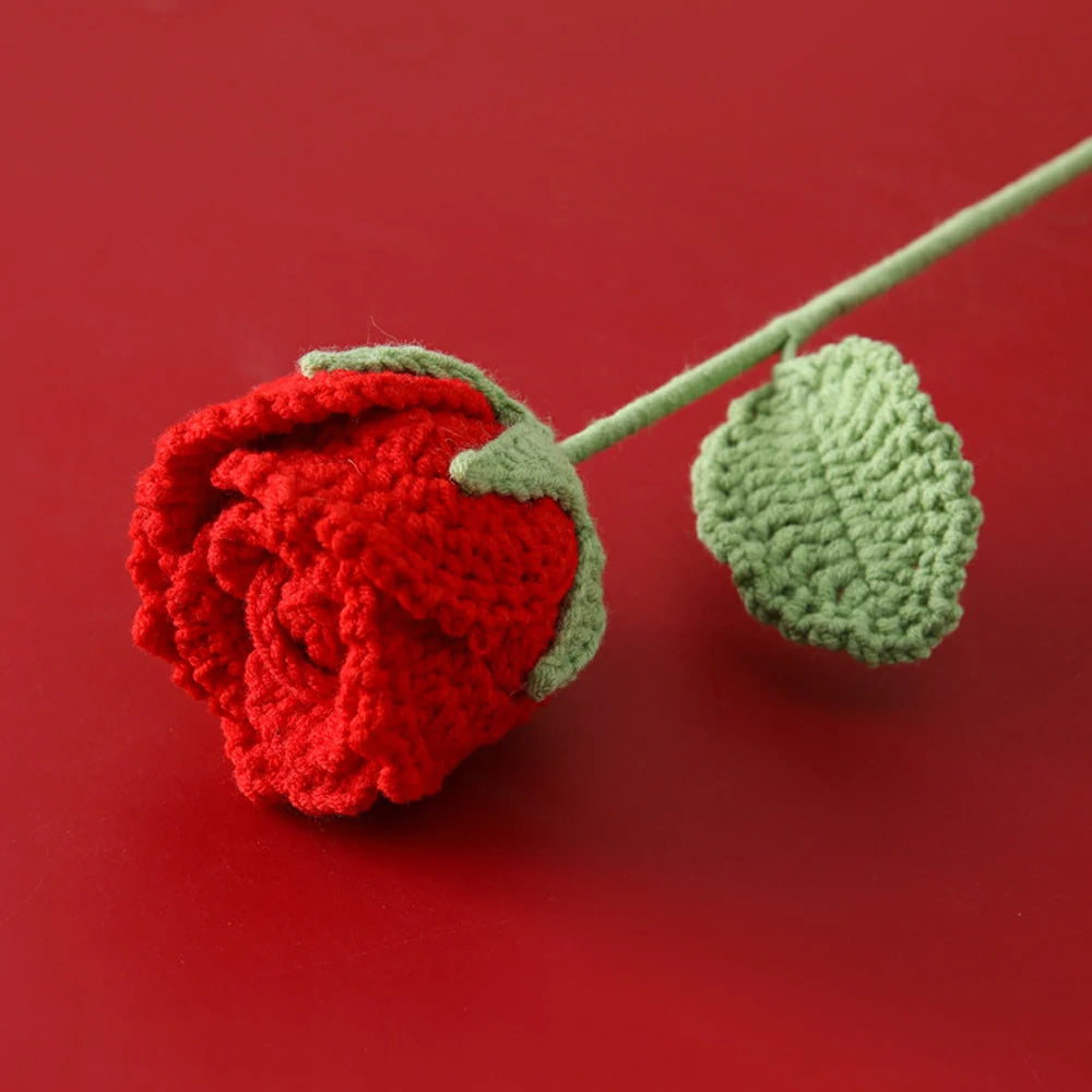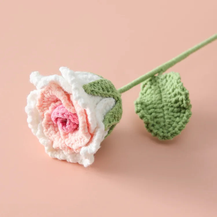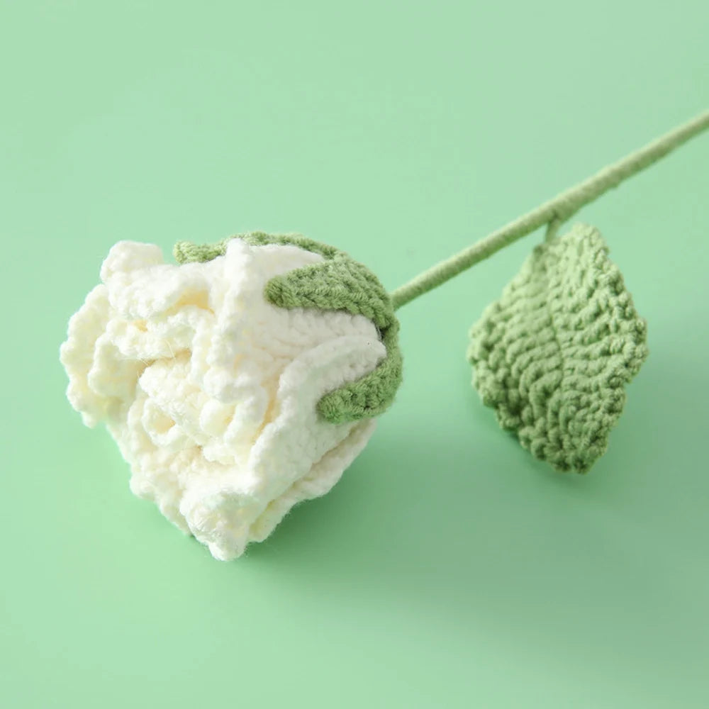 Ajoutez une touche délicate à votre intérieur avec notre Rose Semi-Ouverte Tricotée!